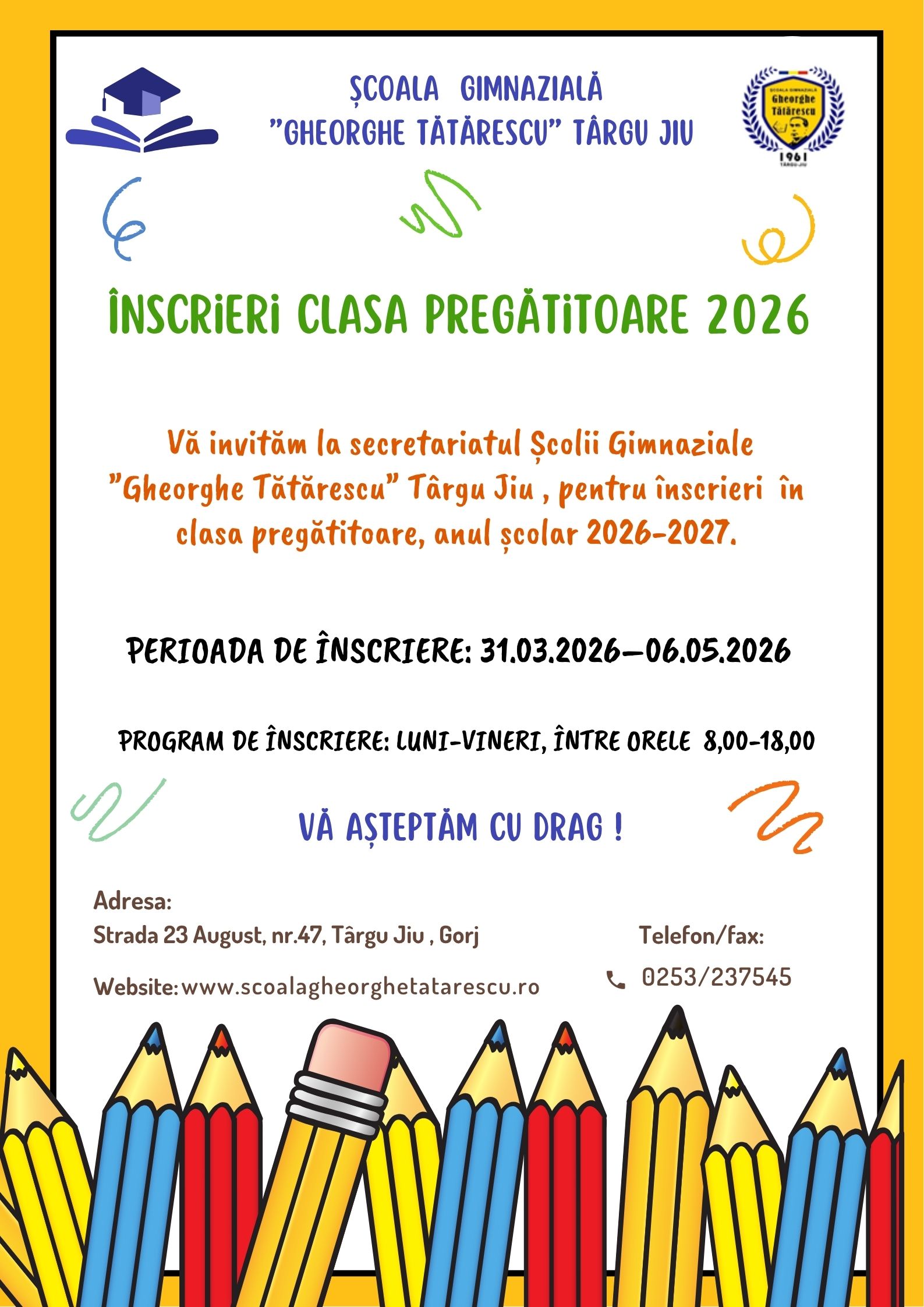 Vă așteptăm cu drag la Şcoala Gimnazială „Gheorghe Tătărescu" Tg-Jiu !